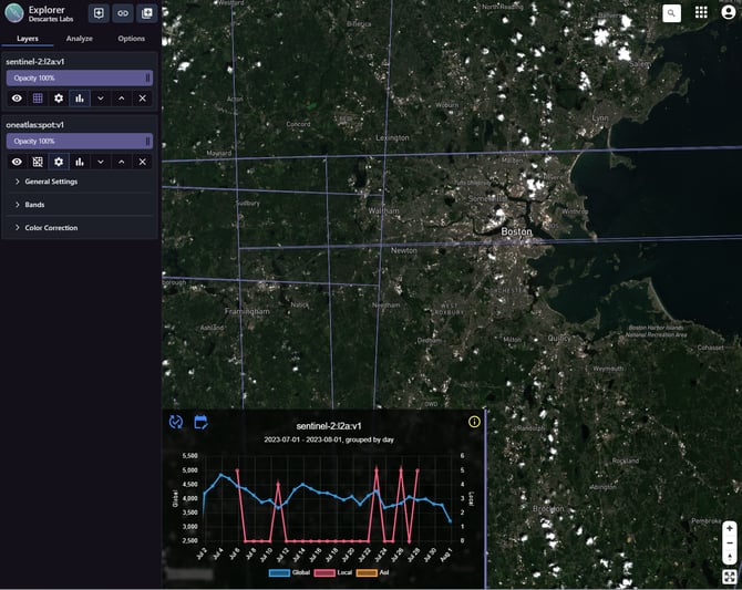 The EarthOne Explorer UI provides users with the ability to search and visualize data products that are available on the Platform. By utilizing Explorer, users can easily become familiar with different data products and their associated metadata. Additionally, Explorer leverages the Catalog to enable users to manage their own datasets, offering a comprehensive solution for data exploration and management.